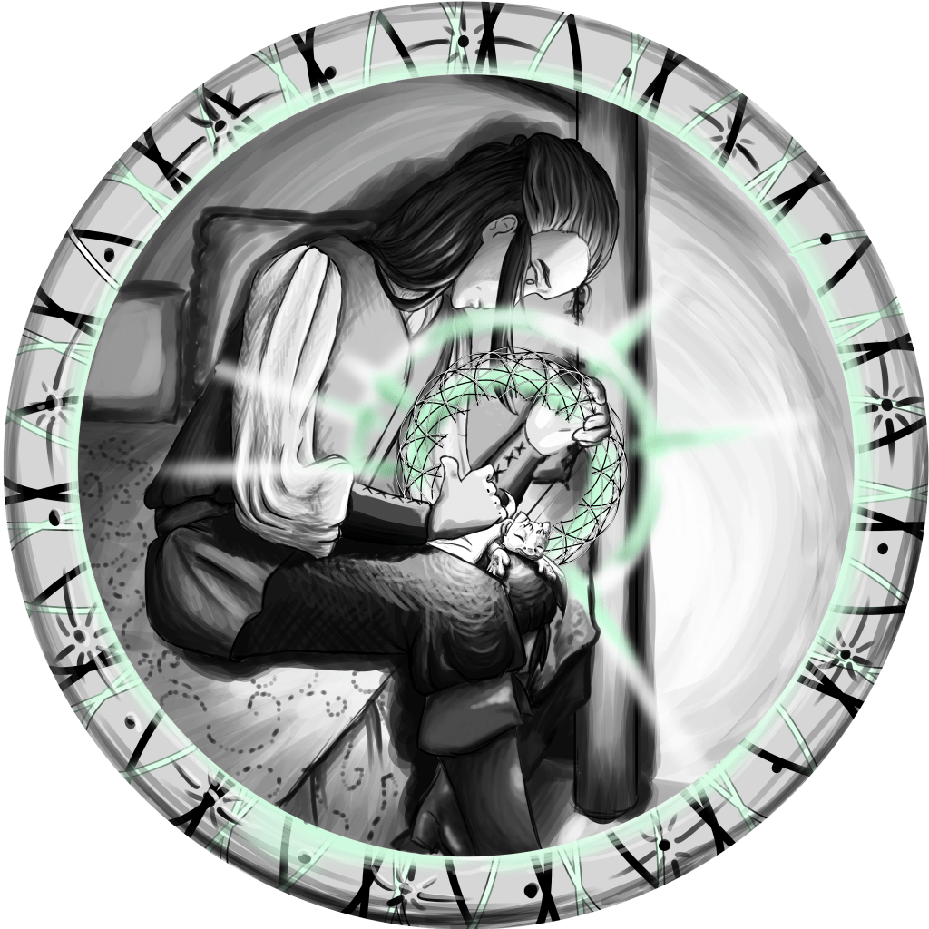 “I can see that.” Conwell carefully adjusts Cecily’s tiny hand in his own large ones. Blood drips onto his own, but many years serving as a healer steels him against it. Taking a breath, Conwell reaches deep within himself, to the well of power seated in his core. Bubbles of mana heed his call. Many decades of practice allow him to carefully coax the liquid strength into the right pattern before expelling his healing enchantment through his hands. A green glow emanates from where he holds Cecily’s injured hand. Within seconds, the cut on her hand closes up; and all that remains is soft, delicate skin. Smoothing his thumb over it, he checks the rest of her hand but finds no other wounds.
