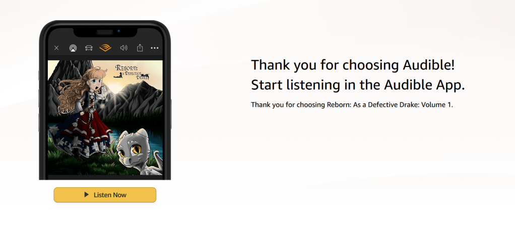 I’m proud to announce that the audio book for Reborn: As a Defective Drake, Volume 1 is now complete and available on Amazon or Audible!