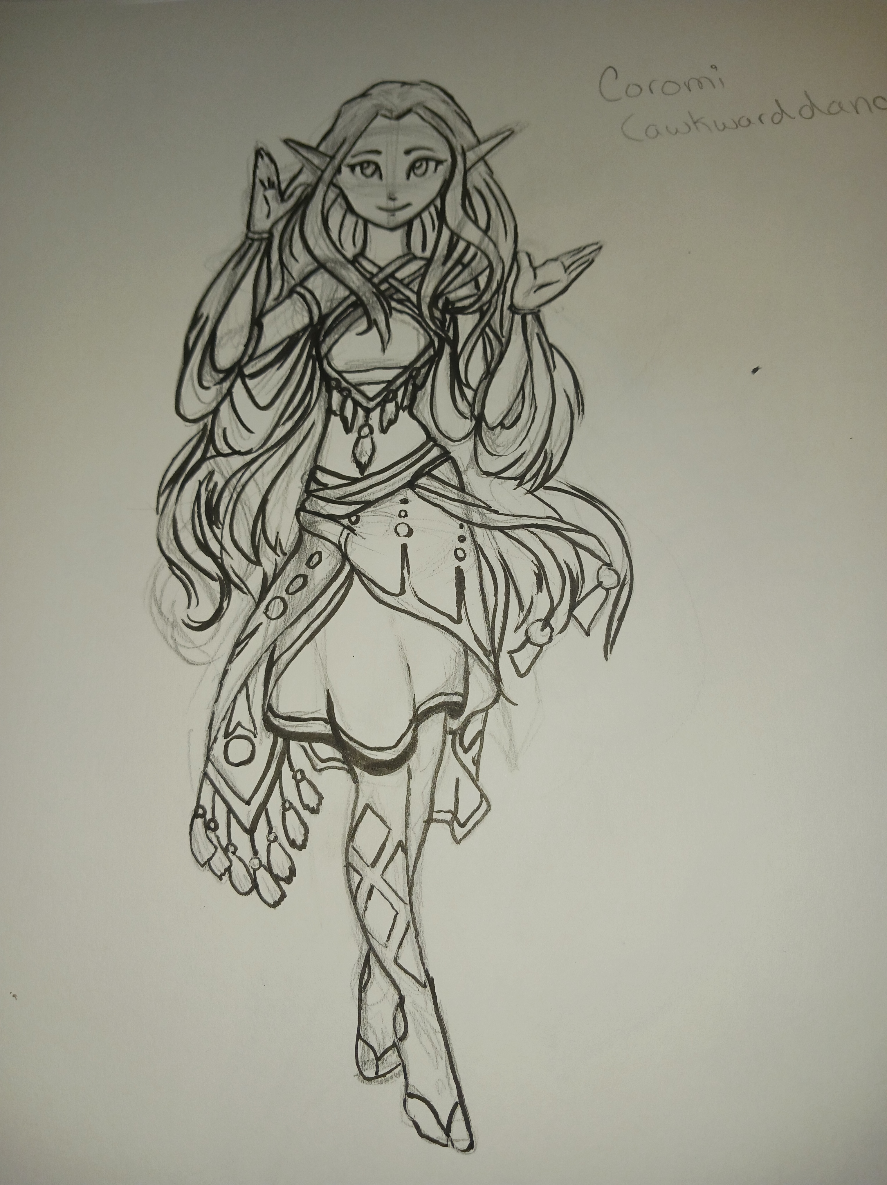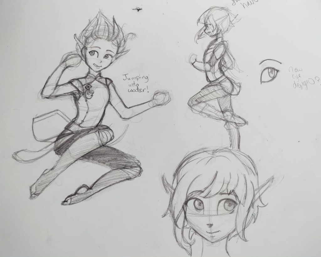 This is Coromi! She’s our hero for this story. She’s a young elveen who wants to travel and see the world outside her tiny cove in the southern mangroves. Over the course of the series she’ll grow from a merchant’s daughter into a cadet, a warrior, and eventually even a leader!